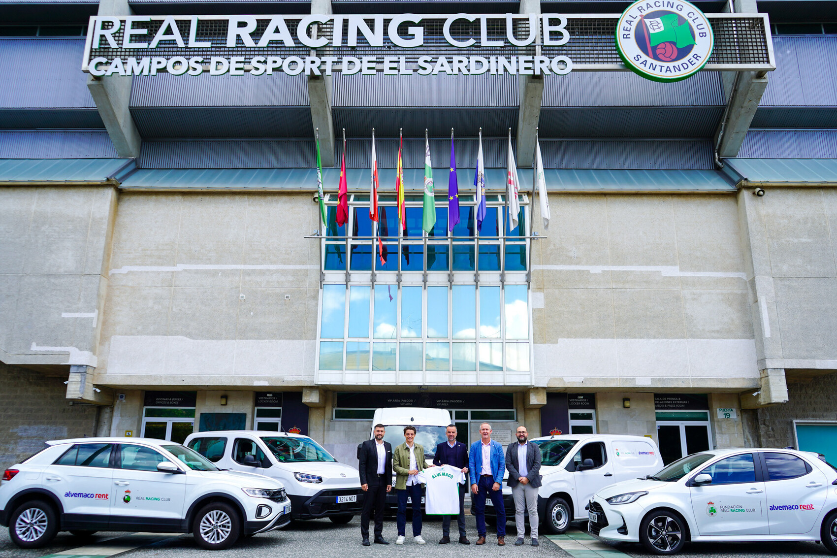 La presentación de ambos convenios de colaboración se llevó a cabo en los Campos de Sport de El Sardinero, donde Alvemaco Rent desplazó una representación de su amplia gama de vehículos. En la firma participaron David Alba, CEO de la compañía; Aitor Carral, gerente; Juan Manuel Mancebo, director de la Delegación en Cantabria; Julián Luque, director financiero del Racing y César Anievas, director de la Fundación.