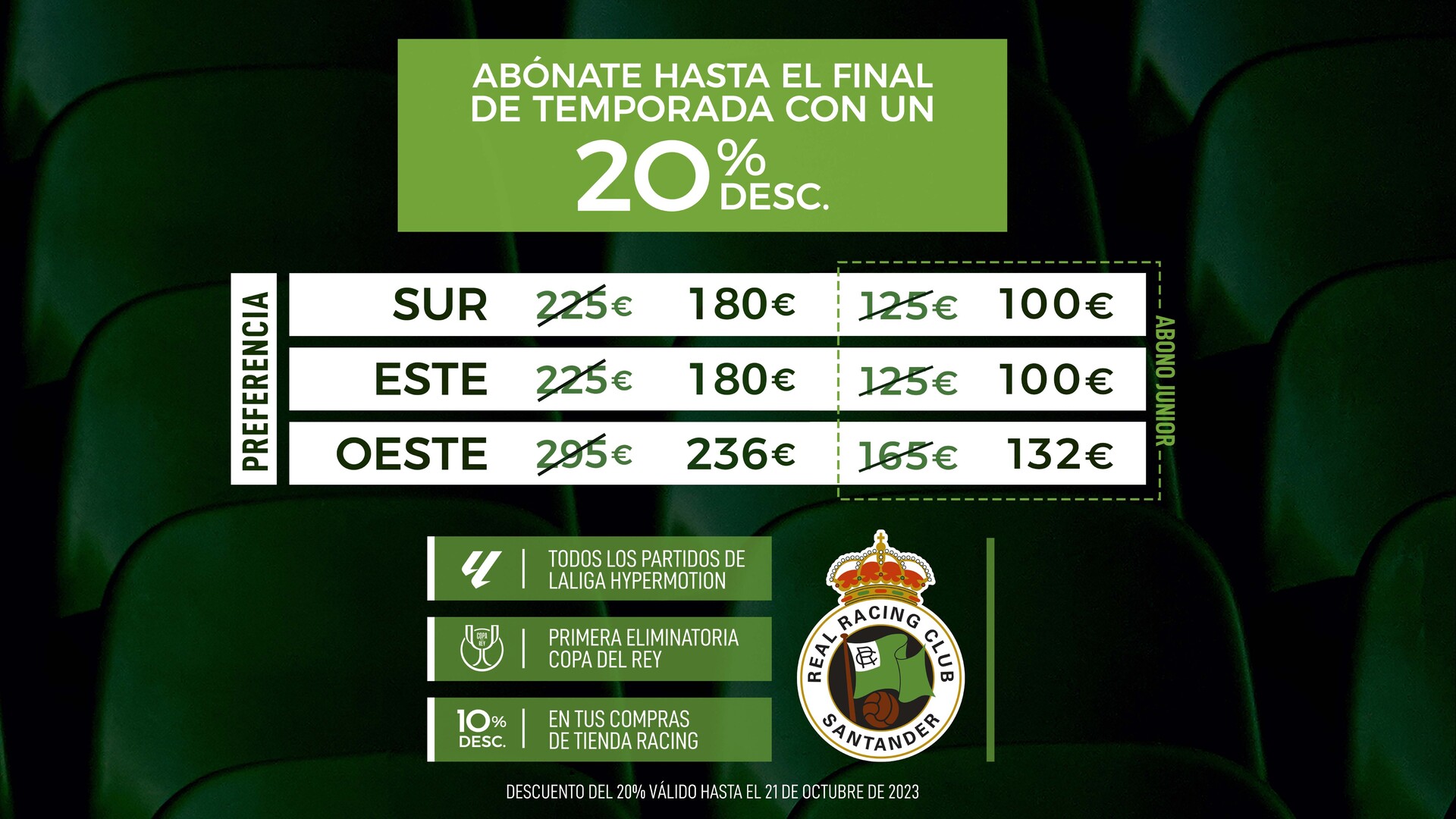 El Racing ofrece abonos con el 20% de descuento en las preferencias Sur, Este y Oeste de Los Campos de Sport